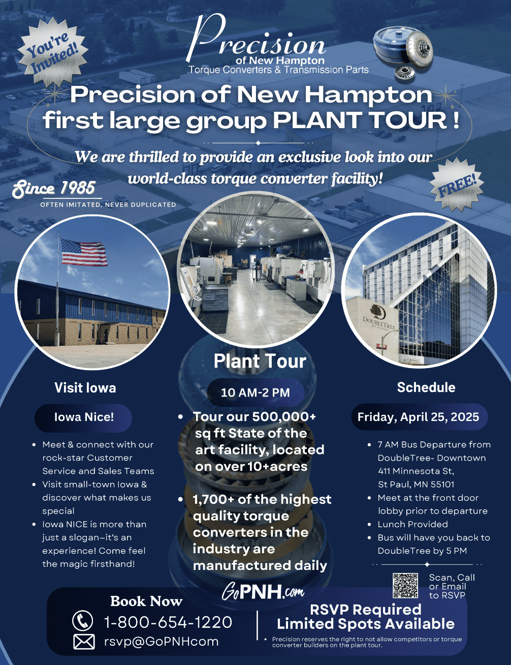 RSVP is Required to rsvp@gopnh.com in order to attend. PNH reserves to right to not allow competitors or torque converter builders on the plant tour.