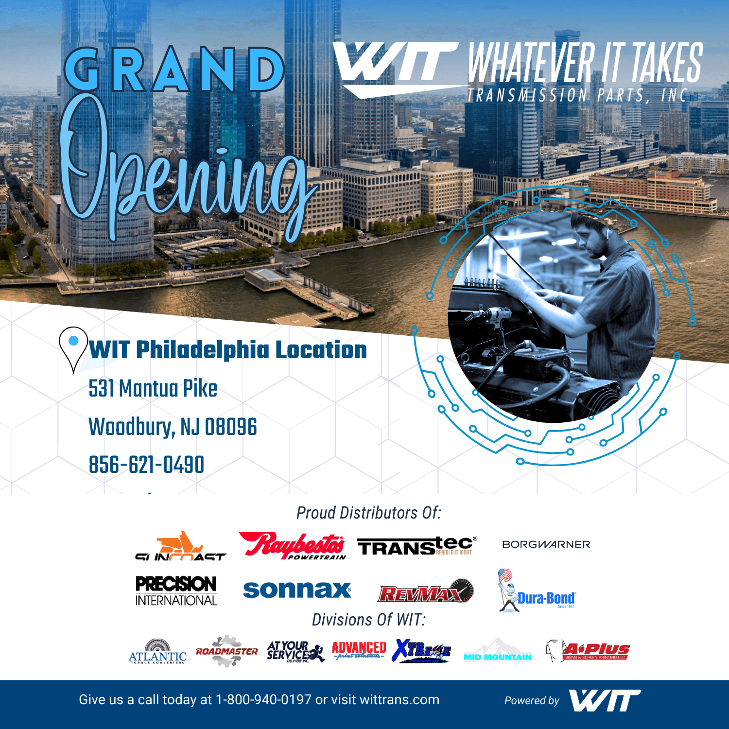 Woodbury, NJ April 30, 2025 – Automotive transmission parts distributor, Whatever It Takes Transmission Parts, Inc., is thrilled to announce the grand opening of their new location in Woodbury, NJ. “We are excited to finally be able to fully partner with automotive and transmission shops in the greater Philadelphia area,” said Rodney Peters, President/CEO of Whatever It Takes Transmission Parts, Inc. “Our company is built on the values of strength, determination, and dedication in service to our customers. Our goal is to give 110% in customer service at our new location.”