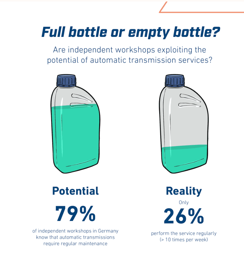 79% of independent workshops in Germany are aware that automatic transmissions require maintenance, yet only 26% carry out the service on a regular basis