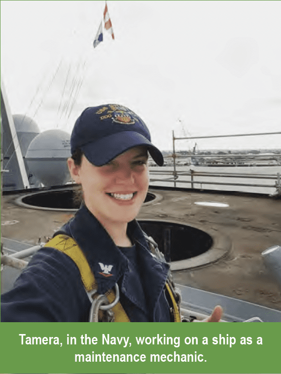 Most people believe when you leave the military, you have lots of training and education to move forward in life, succeed, and find a great career. This was not Tamera’s experience. With little support in her transition from military to civilian, she felt the Navy didn’t see her as their responsibility anymore. There was no job placement assistance and little guidance on what she would do next.