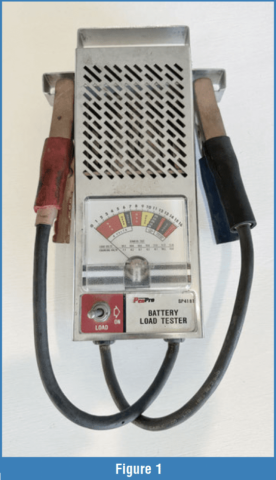 Over the past two decades (maybe even longer), you’ve heard of the importance of battery and electrical systems testing. Voltagedrop testing goes back for as long as I can remember. Battery testing, too. In the old days, you might find someone considering the battery as OK if it operated the starter. A sophisticated shop would invest $30 in a load tester (Figure 1). I was in my 20s when I bought this one. It was the best way to check batteries at the time because it measured the voltage while loading the battery. If you look closely, its maximum Cold Cranking Amps (CCA) was 300. The electrical demands were pretty low back then. You can still find this type of battery tester online and at auto parts stores, although I‘m having a hard time knowing why you’d want one.
