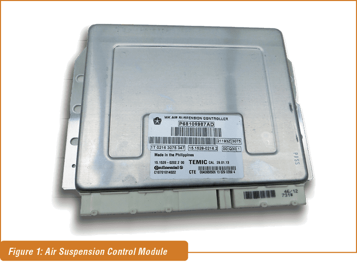 The Quadra-Lift system was introduced in 2011 for the WK2 Grand Cherokee as an alternative to the standard coil spring setup and uses a few different components integrated via the Air Suspension Control Module (ASCM, Figure 1) to operate.