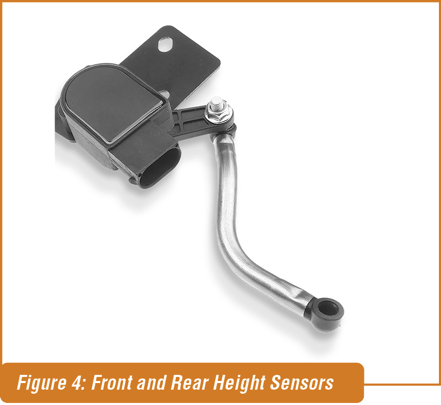 Basic wiring checks should also be carried out when diagnosing any potential faults in the system. Broken or shorted wires to both the compressor and/or the height sensors can occur.