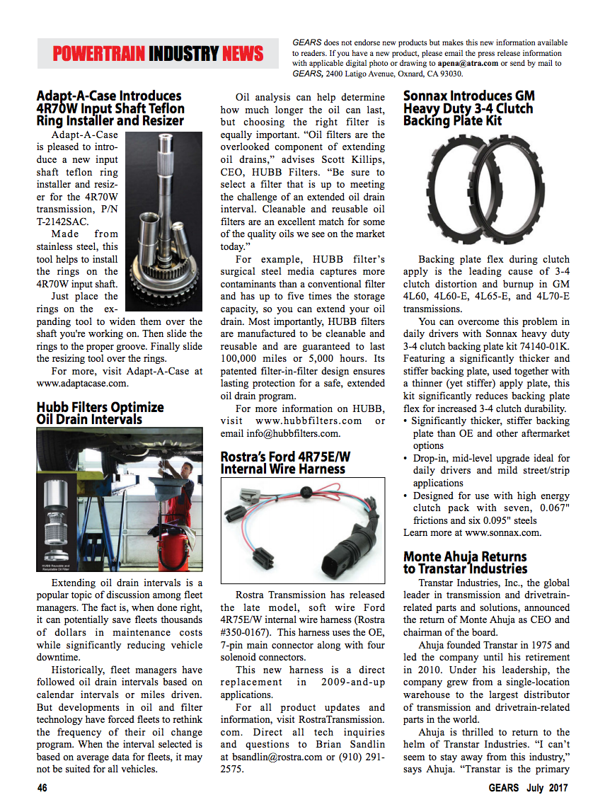 GEARS Staff Share This! Facebook Twitter Pinterest LinkedIn Powertrain Industry News | July - 2017 Powertrain Industry News June 1, 2017135 Views You may also like On the Road | April - 2018 Bypass the TIPM to Test Code P0882 March 30, 2018David Chalker115,824 Views Delivering the Goods | July - 2020 TIPM Problems! Intermittent Fail Safe, Codes, Related Concerns and Solutions June 30, 2020Keith Clark113,085 Views Other Articles | September - 2020 The More You Know About The 10R80… The Better Off You Are! September 1, 2020GEARS Staff78,434 Views Other Articles | January/February - 2020 The ZF 8-Speed Transmission Fluid and Filter Change January 16, 2020Guest Author64,011 Views Share This! Facebook Twitter Pinterest LinkedIn More In Powertrain Industry News Powertrain Industry News | December - 2022 Powertrain Industry News GEARS Staff200 Views Powertrain Industry News | November - 2022 Powertrain Industry News GEARS Staff196 Views Powertrain Industry News | October - 2022 Powertrain Industry News GEARS Staff126 Views Powertrain Industry News | August/September - 2022 Powertrain Industry News GEARS Staff140 Views Powertrain Industry News | July - 2022 Powertrain Industry News GEARS Staff103 Views Popular Columns ATRA +A+ Money MattersM Hi-RevM What's WorkingM Up Your BusinessM Shop ProfileM Back on the BenchT Delivering the GoodsT Keep Those Trannys RollingT Street SmartT Fun With TransmissionsT Other ArticlesO VIEW ALL Social Media