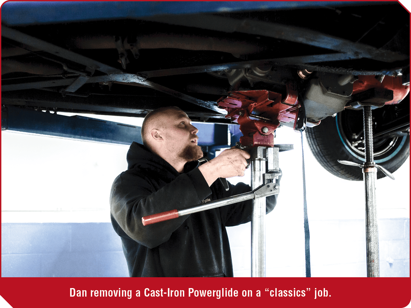 Dan Sizemore has spent the past 15 years making sure every transmission rebuild is a seamless process. He’s Anthony’s right-hand man, handling everything from removing and installing transmissions to prepping classic cars for repairs. If he’s not working on a vehicle, he’s probably warming up with a cup of hot chocolate, a staple of his daily routine.