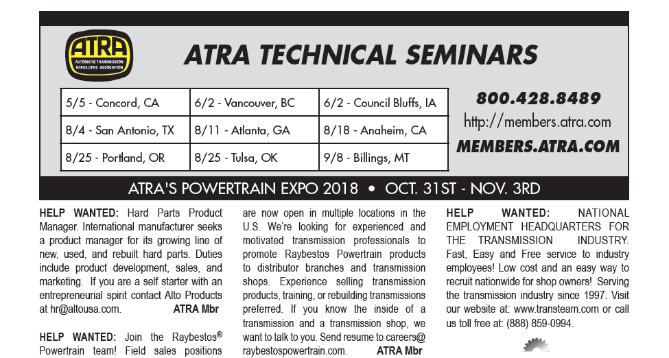 GEARS Staff Share This! Facebook Twitter Pinterest LinkedIn Shoppers and Classified | May - 2018 Shoppers and Classified May 7, 2018124 Views You may also like On the Road | April - 2018 Bypass the TIPM to Test Code P0882 March 30, 2018David Chalker115,824 Views Delivering the Goods | July - 2020 TIPM Problems! Intermittent Fail Safe, Codes, Related Concerns and Solutions June 30, 2020Keith Clark113,085 Views Other Articles | September - 2020 The More You Know About The 10R80… The Better Off You Are! September 1, 2020GEARS Staff78,434 Views Other Articles | January/February - 2020 The ZF 8-Speed Transmission Fluid and Filter Change January 16, 2020Guest Author64,011 Views Share This! Facebook Twitter Pinterest LinkedIn More In Shoppers and Classified Shoppers and Classified | April - 2026 Shopper Ads GEARS Staff18 Views Shoppers and Classified | March - 2026 Shopper Ads GEARS Staff25 Views Shoppers and Classified | January/February - 2026 Classified Ads GEARS Staff47 Views Shoppers and Classified | December - 2025 Shopper Ads GEARS Staff47 Views Shoppers and Classified | November - 2025 Shopper Ads GEARS Staff33 Views Popular Columns ATRA +A+ Money MattersM Hi-RevM What's WorkingM Up Your BusinessM Shop ProfileM Back on the BenchT Delivering the GoodsT Keep Those Trannys RollingT Street SmartT Fun With TransmissionsT Other ArticlesO VIEW ALL Social Media