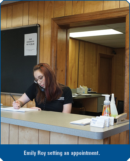 Last and most certainly not least is Lisa’s daughter, Emily Roy. She’s already been with the company for over 6 years. Her roles are many and varied – office manager, customer service, phones, greeting and checking in customers, daily bookkeeping, vehicle computer scans, and she does our vehicle programming. Lisa says, “It’s both a challenge and my greatest pleasure to work side-by-side with my daughter every day. I hope that she will eventually buy and operate the shop to keep it in the family with an ever-present woman’s touch.” Emily enjoys gardening, and spending time with her friends, her boyfriend, and her cat.